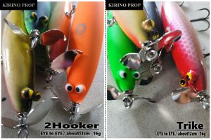 当時はプラグのサイズも魚のアベレージも相対的に見て今よりも小さく、2フッカーのメリットである支点と重心による首振りアクションのしやすさよりも、確実なフッキング性を重視したのか