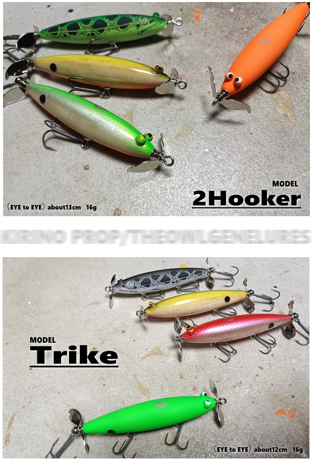 先の「2Hooker」とは対照的に、ペラで拡散しながら飛沫をあげる。金属音が発生するスローな巻きに、メタルサウンドを意識した短くスローな「弱いストロークのジャーク」はトライクだけの必殺技。それらを組み合わせた、状況とフィールドを選ばない多彩なアプローチが可能。