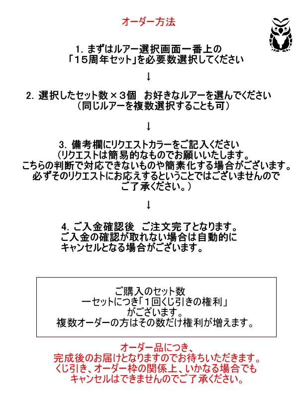 15周年を記念する超豪華なくじ付きカスタムオーダーセットです 超ご期待ください